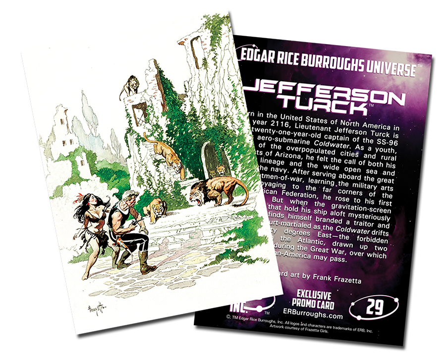 All preorders of Beyond Thirty: Restored Edition placed directly from ERB, Inc.’s online store will come with an exclusive collectible ERB Universe trading card featuring the protagonist of the novel, Jefferson Turck, and artwork by the legendary Frank Frazetta. Collect all of the trading cards by preordering each ERB Universe novel directly from ERBurroughs.com as they release!