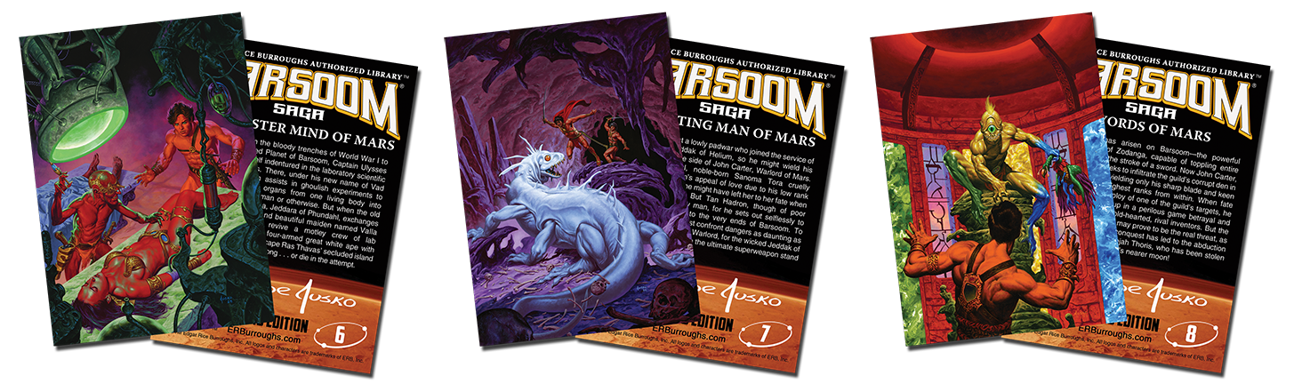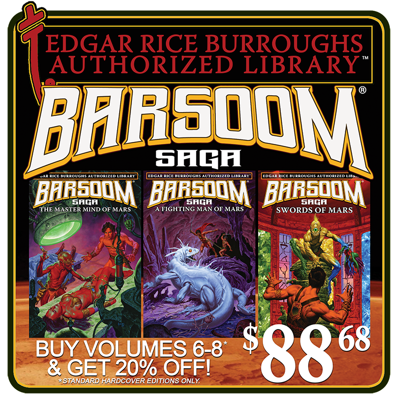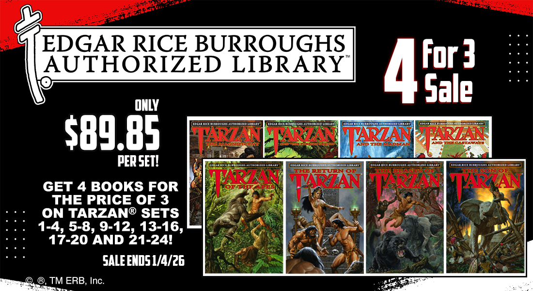 The hardcover Collector’s Edition features a special ERB Universe bookplate signed by Restored Edition editor Christopher Paul Carey, as well as a facsimile autograph of Edgar Rice Burroughs, and includes an exclusive ERB Universe trading card featuring the book’s cover art by Sanjulian. The Collector’s Edition is limited to only 300 copies.