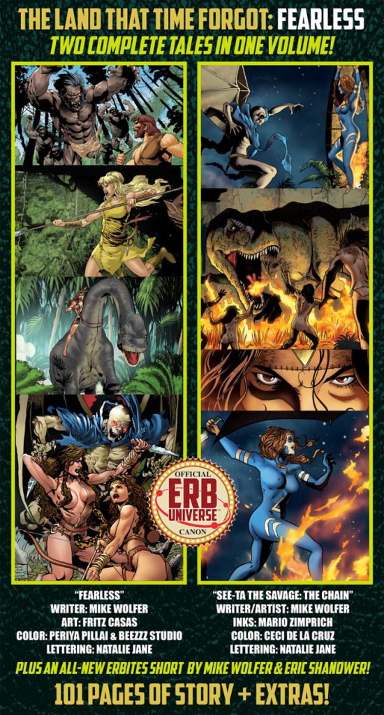 Tuesday, February 24, 2026 (Tarzana, California) We are pleased to announce preorders for The Land That Time Forgot: Fearless, a 101+ page trade paperback that presents in full-color two incredible comics adventures!